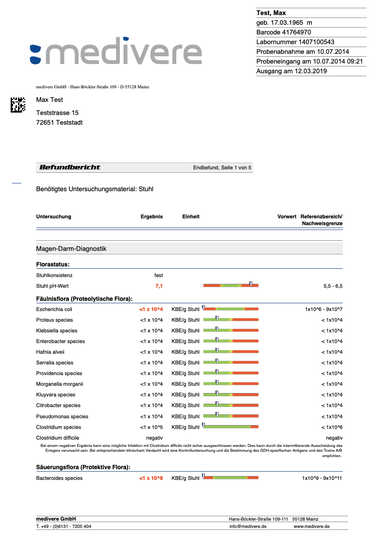 Laborergebnis Beispiel von Medivere DiagnosticsBei den Tests von Medivere Diagnostics handelt es sich um qualifizierte und von der Deutschen Akkreditierungsstelle (DAkkS) akkreditierte Tests, die höchsten Qualitätskriterien entsprechen, es werden also keine Schnelltests angeboten. Das Partnerlabor ist die GANZIMMUN Diagnostics GmbH.